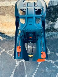 Seggiolino posteriore porta Bambino per bicicletta fino a 22kg. Fissaggio sicuro al telaio oppure alla sella (se tenuta alta). Usato poco su MTB fissandolo al sellino. Meglio scambio a mano. Spedizione disponibile ma va fatta in scatolone grande anche se con peso molto basso.