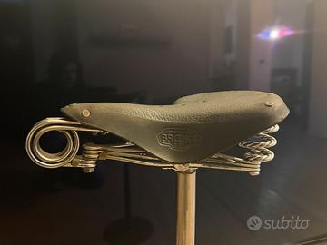 Vendo splendido seggiolino d’epoca Brooks B33, modello iconico inglese ideale per bici classiche, d’epoca o restauri di pregio. Il sellino è realizzato in vera pelle di alta qualità, con struttura robusta e molle posteriori che garantiscono un comfort eccezionale. Perfetto per chi cerca un tocco autentico vintage senza rinunciare alla funzionalità, buone condizioni, 100% originale Brooks, ideale per city bike, bici d’epoca o collezionisti.