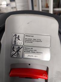 Seggiolino Hamax Observer del 2020, adatto per bambini fino a 15 kg per installazione su parte anteriore della bicicletta.