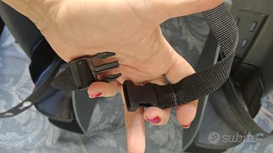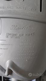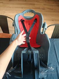 può portare bimbi fino a 22kg, ottime condizioni, solo impolverato, fibbie e cinghie ancora solidissime, manca solo il piolino di aggancio del laccio sinistro ma si può risolvere usando un laccetto. l'aggancio sulla bici ha uno dei 3 pioli mancante ma questo non ne compromette l'aggancio sicuro sulla bici