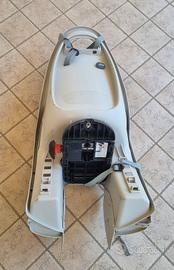 Seggiolino da fissare sul portapacchi classico con norma ISO11243, cintura di sicurezza regolabile in 3 punti, ergonomico per l'uso del casco, poggiapiedi regolabili.