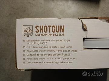 Come da titolo, vendo seggiolino per bambini per mountainbike marca Kids Ride Shotgun. Vendo completo di accessorio per manubrio. Usato ma in ottime condizioni.
