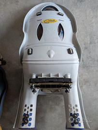 Seggiolino posteriore per bicicletta usato. Presenti barre di fissaggio e cinghie di sicurezza