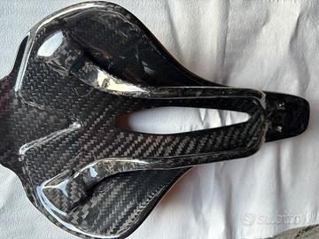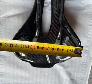 Sella stampata in 3D con scafo e supporti in fibra di carbonio. Montata e smontata dopo prima uscita perché taglia errata. Esteticamente molto bella. Misura indicate in foto peso 185gr.