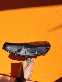 Vendo sella Bianchi originale d’epoca, in cuoio nero con doppia molla posteriore e struttura in acciaio.