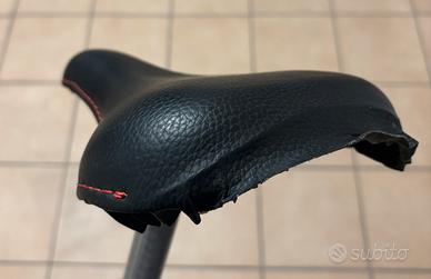 Regalo sella bici usata. In discrete condizioni. Fodera scollata sulla parte posteriore come evidenziato nelle foto. Lunghezza canotto 20cm. Diametro canotto 25,3mm.