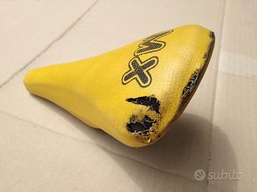 Sella BMX vintage, con segni di usura, strutturalmente integra.