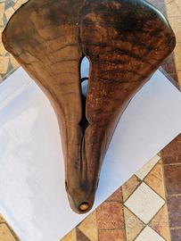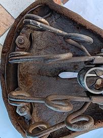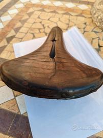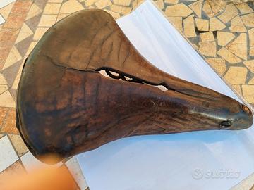 Sella Con Telaio A Riccioli Per Bici D'epoca anni 20/30 in buone condizioni di conservato sia del telaio come pure del cuoio: ai lati della copertura si vedono dei caratteri ma non è leggibile mentre nel cilindro del morsetto si evidenzia la scritta Wittcop made in Germany. Non accetto Tutto Subito per il pagamento. Per ulteriori info chiamare il numero 3707043864