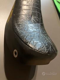Sella per bici cross, o “saltafoss”, originale dell’epoca, marca San Marco, ottime condizioni, fondo di magazzino per restauro di biciclette vintage. Mai montata si vende con formula vista e piaciuta