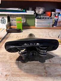 Sella a muso di cane per bicicletta epoca, da uomo, telaio ricondizionato, copertura rifatta in pelle nero e sottosella in cuoio. Marcata GDF. Solo ritiro a mano Milano, Arco della Pace