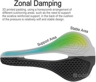 ATTENZIONE: Prodotto personalizzato, contattare prima dell’acquisto per conferma disponibilità e configurazione. Realizzo sella bici personalizzabile con base in carbonio e imbottitura stampata in 3D lattice, studiata per offrire comfort, leggerezza e prestazioni elevate. Adatta per: •bici da corsa •gravel •MTB / XC •granfondo Caratteristiche •Peso solo 140 grammi •Base rigida e leggera in carbonio •Cover 3D che distribuisce meglio la pressione •Prodotto personalizzabile in base alle tue misure •Possibilità di scegliere configurazione più racing o più comoda Personalizzazione Dopo l’ordine viene fornita una semplice guida per rilevare la distanza delle tuberosità ischiatiche e scegliere la larghezza corretta. Inoltre puoi indicare le tue preferenze per: •tipo di bici •utilizzo prevalente •posizione in sella •preferenza comfort / performance Ideale per chi ha: •fastidi dopo uscite lunghe •intorpidimento •bisogno di una sella più adatta alla propria posizione durante le lunghe uscite