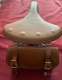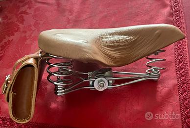 Sella tipo brooks con borsellino, modello vintage. Triplo molleggio