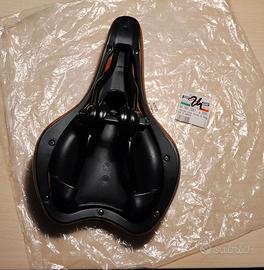 Sella old time in pelle marrone beige per city bike comfort completa di morsetto. Made in Italy