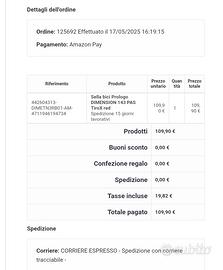 Sella bici utilizzabile sia per MTB che CORSA , modello PROLOGO DIMENSION 143 RED - Larghezza 143 mm Acquistata nuova a 110 euro ed utilizzata solamente per tre uscite, non più di 100 km. Molto bella ma purtroppo troppo stretta e non si addice al mio bacino.