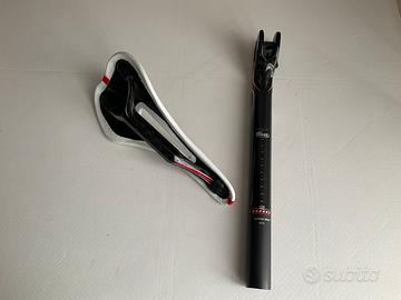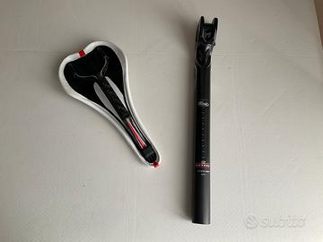 Sella Selle Italia in Kit nuovo cosi formato : sella SLR Monolink Flow bianca in fibra di carbonio + canotto reggisella in carbonio Monolink di 31,6 + kit adattatore del canotto in carbonio per selle con telaio classico .