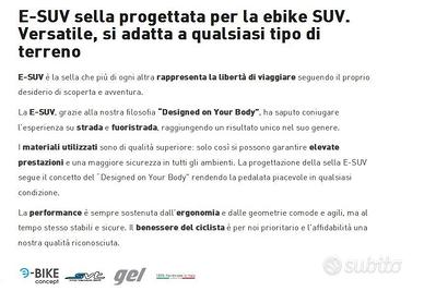 LA NUOVA SELLA SMP E-SUV GEL E' IL SINONIMO DI COMFORT IN ASSOLUTO! QUESTO GRAZIE AL POLIURETANO ESPANSO CON INSERTI IN GEL