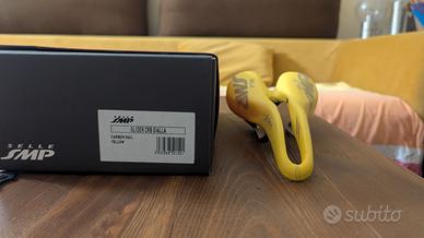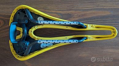 Vendo per inutilizzo (usata per circa 1 anno per cambio progetto) prestigiosa sella SMP Glider ANTIprostata dal design unico, artigianale e 100% Made in Italy acquistata con regolare fattura (vedi foto) nella versione più leggera con telaio in carbonio con rivestimento in microfibra giallo vintage.