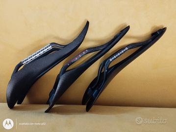 Tre selle Carbonio diversi modelli, acquistate e mai usate, mai montate, nuove 100%, prezzo 35 euro cadauna.