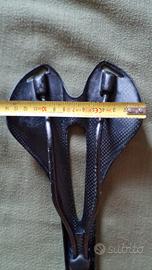 vendo 4 tipi di selle in full carbonio nuove mai montate di cui 3 identiche ma sono state colorate in modo custum con loghi che non rappresentano il marchio ma solo abbellimento estetici mentre l'ultima quella senza fori porta borsello è più stretta e leggera delle altre