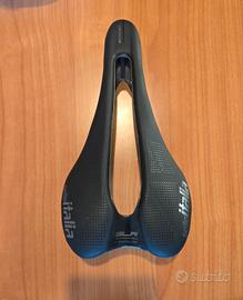 Vendo sella Slr Superflow taglia S3 per bici da corsa di altissima gamma: Sella di ultimissima generazione completa di carro in carbonio. >Montata un anno su bici da esposizione, sella ancora in garanzia. Leggerissima e confortevole peso 122gr. Prezzo listino €319,90. Larghezza 130mm( 1cm meno della Tag. L) Lunghezza 25cm. È tra le selle più leggere sul mercato -100gr rispetto selle di medio gamma, indicata per chi vuole alleggerire la bici e cerca una guida agile e scattante. Consegna a mano o spedizione a mio carico. bdc come colnago specializated pinarello sl7, sl8, Y1rs, V4, V5 e altre compatibilità.