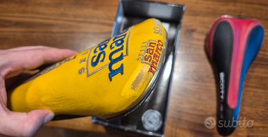 Vendo due selle vintage per bicicletta, una Scott USA e una San Marco. Quest'ultima ha ancora la scatola originale. Entrambe presentano leggeri segni di usura (inevitabili considerando la loro "età") ma colori ancora accesi.
