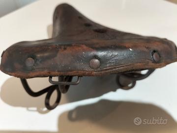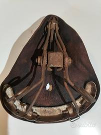 sellino sella bici bicicletta epoca vintage cuoio pelle, condizioni vissute come da foto per restauro o da tenere così per uso o esposizione. Difetti come da foto.