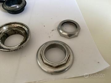 Serie sterzo 600 Shimano completa di cuscinetti sigillati ( 1 in omaggio) in ottime condizioni, nessun graffio sulle calotte e sui dadi.