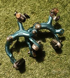 VENDO coppia freni+leve Weinmann®, nuovi, anni '70, anodizzati in azzurro, mai montati, mai frenato, pattini intonsi come il resto dei pezzi. ideali per allestimento biga per EROICA, INTREPIDA etc. Sono unici, campionatura proveniente dall'importatore in mio possesso da gli anni '90. (sono mancanti di un registri sul freno, di reperibilità semplicissima).
