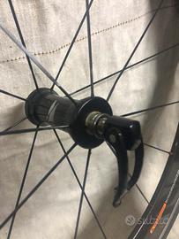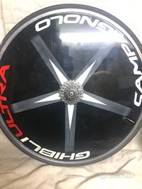 Posteriore lenticolare con cassetta Campagnolo 9V (compatibile perfettamente con gruppi 11V), per tubolare, pista frenante in alluminio.