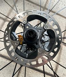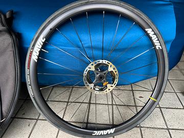 set di ruote per bici da corsa Mavic usate 2 volte per circa 100km totali , complete di gomme Vittoria Rubino Pro ,di rapporti Sram 10-28T 12SPD XDR ONI..e dischi freni RT-MT900-SS