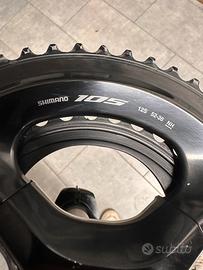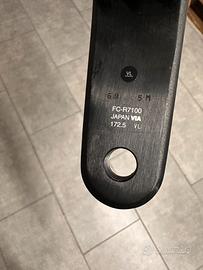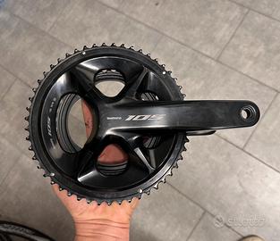 Utilizzo: Strada - Serie: 105 R7100 - Velocità: 2x12v - Combinazioni: 52/36D - Lunghezza pedivella: 172,5mm - Asse: 24 mm - Corona: 4 fori - Girobulloni (BCD): 110 mm - Linea catena: 44,5 mm - Q-factor: 148 mm - Materiale pedivelle: Alluminio - Materiale perno: Acciaio - Materiale corone: Alluminio, GFRP - Peso 768.4 gr. - Colore: Nero Totale km fatti 2881 esatti.