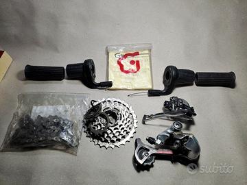 - Guarnitura Shimano XT FC-M760 per tripla: 30€ - Guarnitura Shimano XT FC-M785 per doppia comprese corone 38-24t buone: 45€ - Comandi cambio DUAL CONTROL (cambio + freni Vbrake-disco meccanico) Shimano SL-M760. 18€ GRUPPO SHIMANO 2x11v [in blocco 65€] - Shimano XT RD-M8000 11v : 35€ - Deragliatore anteriore Shimano XT FD-M8025 per doppia: 15€ - Comandi Shimano XT SL-M7000-11 2/3x11: 30€ - Catena 11v NUOVA: 10€ - Freno a disco meccanico Shimano BR-M495 10€ - Cassetta pignoni Shimano 9v (11-32t) 10€ - Cassetta pignoni Shimano 9v (11-34t) 15€ - Coppia leve cambio a frizione (friction shifters) 3x7v nuove mai usate 10€ Gruppo Shimano 3x7 (tutto insieme 30€): - cambio Shimano STX RD-MC34 10€ - deragliatore Shimano ACERA FD-MC14 5€ - Pignone 12-32t 5€ - Manettini SRAM GRIP SHIFT 400 10€ - catena usata, gabbiette puntapiedi in regalo CANNONDALE sella 15€ Cannondale attacco manubrio 10€ Truvativ attacco manubrio 15€ Ritchey WCS/Comp attacco manubrio + reggisella 20€ Sella BROOKS : 80€ Tutto usato funzionante con segni di utilizzo. Le immagini sono parte integrante della descrizione. Ulteriori foto di dettaglio a richiesta. Gradito TuttoSubito: creerò annuncio per ogni oggetto di interesse.