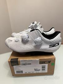 Vendo scarpe sidi genoius tg.40,5, vanno bene per chi indossa il numero 40, scarpe per bici da strada praticamente nuove, provate e basta, tacchette non incluse, spedizione a carico dell’acquirente!
