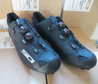 SIDI MTB TIGER 2 SRS CARBON Uso: MTB/XC. Suola: MTB SRS Carbon-Ground. Tomaia: Microfibra TechPro opaca e rete. Soletta confort. Chiusura: doppio Tecno-3 Push Flex. Pedali sgancio Automatico (SPD - 2 fori). Punta in gomma, Tacco sostituibile, Tallone integrato, Reflex Adjustable Heel Retention Device. Misure disponibili: 45 Prezzo di listino euro 409,00