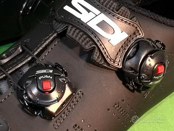 Suola in carbonio composito 12, chiusura Tecno 3 push system e sistema velcro. Tomaia in microfibra techpro, tallone rinforzato, tacco antiscivolo. No graffi o parti mancanti, con attacchi per pedali. Con propria scatola, completa di sacca per il trasporto e libretto istruzioni con tutti gli adesivi. Ideale come #idearegalo.