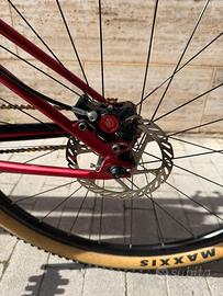 Bici single speed 29" Vassago - modello Jabberwocky Telaio Vassago Jabberwocky in configurazione single speed, ruote da 29". Allestimento leggero e curato con componenti di qualità: o Reggisella e manubrio FRM in carbonio o Sella Bontrager o Pedali e manopole Cannondale o Cerchi Mavic o Copertoni Maxxis o Forcella in carbonio Pro XCR Taglia / geometrie: o Tubo orizzontale: 59 cm o Tubo verticale: 42 cm
