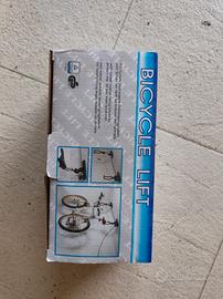 Sistema con cavi per sollevare e riporre la bici al soffitto.