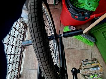 Bici bmx con molte cose cambiate e pochissima ruggine tutto funziona come se fosse nuova pure i freni tutto ottimo unica cosa da cambiare e la verniciatura che è un po esaurita in alcuni posti
