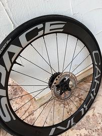 Vendesi ruote Spacecarbon in carbonio usate pochissimo profilo 54mm Mozzo: DT180 Corpetto: Shimano HG Canale interno: 25mm Raggi: Alpina Peso set 1385Roval Syncros Mavic Racefactory Enve