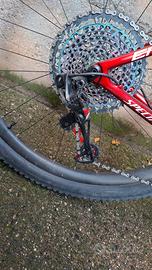 - trasmissione sram x01 red (molto rara) e pacco pignoni xx1 rainbow con 3000km e catena al 75%