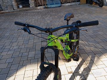 E-bike perfettamente funzionante, pastiglie nuove, freni maggiorati, motore appena revisionato ( sostituiti: cablaggio, scheda elettrica, cinghia, e cuscinetti ) misura s ( ideale per altezze m 1,60/1,70. Kit sbloccaggio velocità,