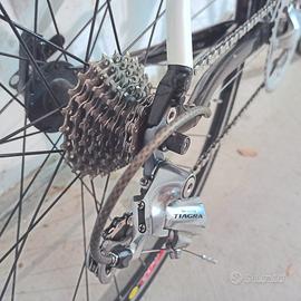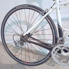 telaio in alluminio con forcella in carbonio, gruppo Tiagra 9v con corone 50/34, pignoni 11-25, (corona 50, pignoni e catena sostituiti da pochi km), cerchi Mavic, copertoni 700x25, sella Selle Italia Model X, reggisella rivestito in carbonio, manubrio Specialized, doppio porta borraccia. Ottime condizioni.
