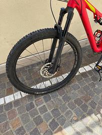 La Camber FSR Comp M5 è perfetta per chi ricerca la massima velocità sul trail e regala grandi prestazioni sia in salita che in discesa.La bici ha percorso 4500 km, è in condizioni pari al nuovo,rispetto all’equipaggiamento originale ha in più reggisella telescopico e tannus antiforatura su entrambe le ruote.Viene venduta con tutti i documenti e gli stickers originali.*TELAIO:M5alloy,Trail Geometry,PF30BB,internal cable routing, 12x142mm dropouts,sealed cartridge bearing pivots,replaceable derailleur hanger,120mm of travel*FORCELLA:RockShox Revelation RL29,Solo Air spring, lockout and rebound adjust,15x100mm MaxleLite thru-axle,51mm offset,120mm travel*AMMORTIZZATORE POST.:FOX FLOAT Performance,Rx Trail Tune,AUTOSAG,DPS damper,rebound and 3-position compression adjust,205x53mm*MOZZO ANTERIORE:Specialized disc,alloy,sealed cartridge bearings,15x100mm thru-axle,24h*MOZZO POSTERIORE:Specialized disc,alloy,sealed cartridge bearings,12x142mm thru-axle,28h* RAGGI:DT Swiss Industry,stainless,3x,2.0"*CERCHI:Roval Traverse29,hookless alloy,29mm inner width,24/28h,tubeless ready*PNEUMATICO ANT.:Purgatory,Control casing,29x2.3",60TPI,Aramid folding bead,2Bliss Ready*PNEUMATICO POST.:Ground Control,Control casing,29x2.3",60TPI,Aramid folding bead,2Bliss Ready*GUARNITURA:RaceFace Aeffect,6000-series alloy,24mm spindle,49mm chainline,26/36T MOVIMENTO CENTRALE:PF30*COMANDI:SRAM NX,11-speed,trigger*DERAGLIATORE ANT.:SRAM GX,mid direct-mount,2x11*CAMBIO POSTERIORE:SRAM GX,long cage,11-speed*CASSETTA:SRAM PG-1130,11-speed,11-42t*CATENA:SRAM PC-1110,11-speed w/PowerLink*FRENO ANTERIORE:Shimano M506,hydraulic disc,resin pad,200/180mm rotor*FRENO POSTERIORE:Shimano M506,hydraulic disc,resin pad,180/160mm rotor*MANUBRIO:Specialized,6061 alloy,6-degree upsweep,8-degree backsweep,27mm rise,750mm width*MANOPOLE:Specialized Sip Grip,half-waffle,*ATTACCO MANUBRIO:Specialized Trail,3D forged alloy,4-bolt,6-degree rise*SELLA:Body Geometry Henge Comp,143mm*COLLAR