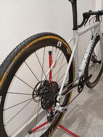 CARATTERISTICHE : TELAIO : Crux FACT 10r Carbon, movimento centrale filettato, 12x142 mm.; FORCELLA : FACT in carbonio, 12x100mm, fissaggio disco flat-mount; MANUBRIO : Specialized Adventure gear 118,9 mm drop, 70 mm reach x 12° flare; ATTACCO : Specialized Alloy, 30mm; NASTRO : Supacaz Super Sticky Kush; SELLA : Power sport, rail in acciaio; REGGISELLA : Roval Terra20mm offset; COLLARINO : Collarino in alluminio 30 mm; FRENO ANT. SRAM Rival, hydraulic disc; FRENO POST. SRAM Rival, hydraulic disc; COMANDI SRAM Rival; CAMBIO POST. : SRAM Rival 1, long cage CASSETTA : Sram 11v. 10/42 GUARNITURA SRAM Rival 1 ,corona40t + corona dekas 38t. pedivelle Sram Rival1. 170mm MOVIM. CENTR. SRAM GXP; CATENA: Sram PC X1 11v. RUOTE : Reynolds Carbon Assault Le Copertoncini TB Challenge Flandrien 33