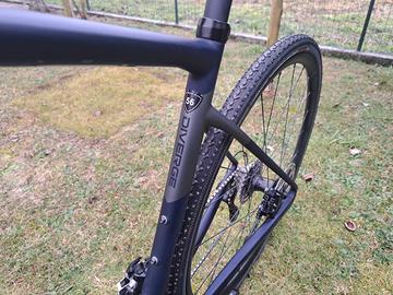 Al momento la bici monta coperture da 33mm tubeless, verrà venduta con coperture gravel WTB Riddler tubeless ready da 45mm con camera d'aria.
