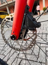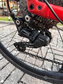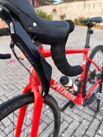 Colorazione rossa, taglia 56. Due anni di vita e 2000 km all’attivo, usata solo per fare viaggi. Come nuova (quinta bici). Vendo con pedali, porta borracce luce anteriore e luce posteriore incluse. Scheda tecnica: La Diverge Elite ha un telaio in lega E5 Premium ed una forcella completamente in fibra di carbonio FACT. Tutto quello che serve per pedalare veloce, con confidenza e comfort su strada, gravel e in off-road. Con il cambio per gravel Shimano GRX 400 2x10, le ruote in lega Axis Elite con pneumatici Specialized RoadSport 35mm la Diverge E5 Elite è estremamente capace e versatile. Telaio: Specialized Diverge E5 Premium Aluminum, threaded BB, internal routing, 12x142mm thru-axle, flat-mount disc Collarino: Alloy, 30.8mm Forcella: FACT carbon, full carbon steerer, 12x100 mm thru-axle, flat-moun Manubrio: Specialized Shallow Drop, 6061, 70x125mm, 31.8mm clamp Attacco: Specialized, 3D-forged alloy, 4-bolt, 7-degree rise Nastro: Specialized S-Wrap Sella: Body Geometry Bridge Saddle, steel rails Reggisella: Alloy, 2-bolt Clamp, 12mm offset, 27.2mm, anti-corrosion hardware Freni: Shimano GRX 810, Hydraulic disc Comandi: Shimano GRX RX400 hydraulic brake levers, 2x10 speed mechanical shifting Deragliatore: Shimano GRX RX400, braze-on Cambio: Shimano GRX RX400, 10-speed Cassetta: Shimano CS-HG50-10, 10-Speed 11-36t Guarnitura: Shimano GRX RX600 Ingranaggi: 46/30T Movimento centrale: Shimano 68mm threaded Catena: KMC X10, 10-speed w/ reusable Missing Link™ Ruote: AXIS Elite Disc. Pneumatici: Specialized Pathfinder Sport, 700x38c. Camere: 700x28/38mm, 48mm Presta valve. Colore: rosso (Satin Redwood/Gloss White/Chrome/Clean). Valuto scambio con accessori e bici da corsa S-WORKS, TREK, Bianchi, ORBEA, Pinarello