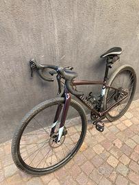 Gravel di Specialized, telaio in alluminio, freni a disco, sistema di ammortizzazione a manubrio. Ben tenuta, acquistata nel 2019 ha ora circa 3.000 km di percorrenza con alcuni segni sul telaio perfettamente integro. Pacco pignoni nuovo e catena nuova.