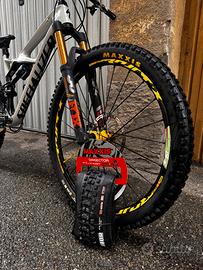 dimensione telaio m e coppia ruote mavic 27.5,forcella Fox 36 kashima coat e ammo posteriore Rock shox dluxe revisionati da gianoglio suspension, cambio sram XO 11 velocita, corona anteriore rental ,tendi catena shmn, reggisella telescopico specialized, cockpit specialized, freni sram guide , manopole all mountain style, copertone posteriore nuovo maxis tubles dissector e anteriore minion dhf al 60% con uno di ricambio tubles dissector in omaggio