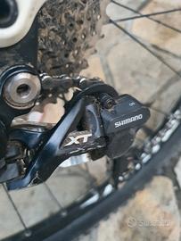 Deragliatore anteriore SRAM X0 e cambio posteriore Shimano XT con comandi SLX e allestimento 2x10 che rappresenta il mix perfetto di prestazioni e durata per anni di allenamenti e gare.