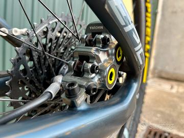 Bicicletta taglia L montata top di gamma per sfizio personale, tenuta maniacalmente, nessun segno su telaio o pedivelle, tutta pellicolata, gomme nuove ancora con peletti, impianto frenante magura top gamma con pinze a 4 pistoncini frena da paura senza mai nessun segno di cedimento nelle discese piu lunghe.